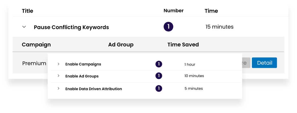 - Resolve structural issues: Ensure a streamlines campaign structure by highlighting conflicts or duplicates.