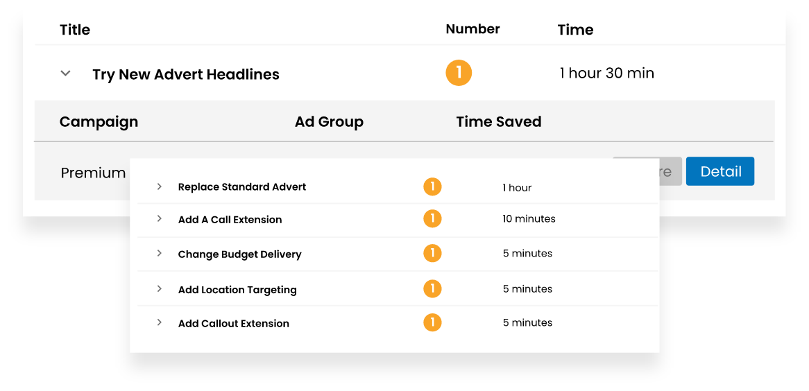 Applying these opportunities are easy wins to make sure your campaigns are running at optimum performance. They identify areas of your account that require attention, such as paused campaigns, conflicting keywords and other often overlooked problems.