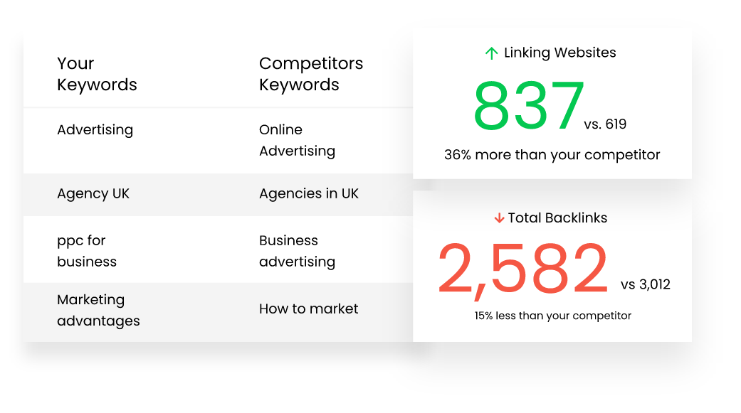 Identify backlink opportunities and discover new target keywords to expand your reach, giving you more chances to hit the top spot.